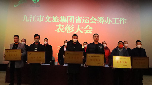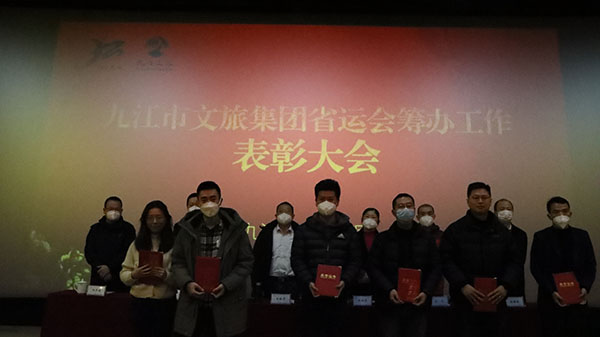 在市委市政府召开的省运会总结表彰大会中,授予文旅集团突出贡献集体;授予程鹏突出贡献个人;授予王叙宇、许松华、刘燕、刘文、沈华满、徐海根、王陈一、刘伟、陆慧波、吴言语优秀个人,充分体现了市委市政府对市文旅集团的关心厚爱和充分肯定。