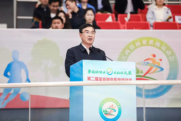 3月11日,第二届全省林业系统健身运动会在九江市体育中心盛大开幕。省林业局党组书记、局长邱水文,中国林科院亚热带林业实验中心主任谭新建,九江市人民政府副市长容长贵,省自然资源厅党组成员、驻厅纪检监察组组长邝先华等相关领导出席开幕式。省林业局一级巡视员罗勤主持,各设区市林业局主要负责同志,全体参赛运动员以及九江市林业系统代表等参加开幕式。