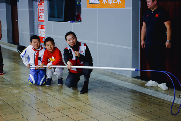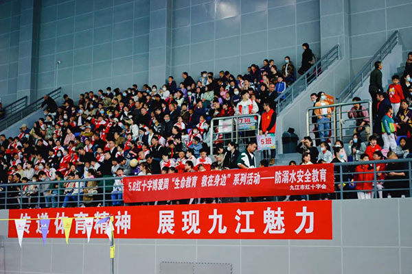 此次防溺水实践教育活动,在九江市八里湖体育中心游泳馆举办,由市文旅集团元启体育产业发展有限公司、九江市红十字会承办,江西青苗体育发展有限公司执行。在升旗仪式之后,游泳馆组织全体师生集中观看了专题教育片,通过真实案例,分析学生溺水的原因、溺水的危害、如何预防溺水等知识。通过现场宣讲防溺水知识、模拟真实溺水场景、救生员及时正确施救、意外落水如何正确自救和他救等形式,讲、演、练结合,让学生通过沉浸式体验,真切感受到溺水的无力感和严重性,增强学生敬畏生命的意识,并掌握溺水时正确呼救、快速自救的方法、救援道具的正确使用和简单的施救措施等。
