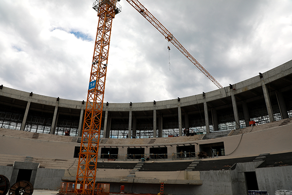 九江新闻网讯(九江日报全媒记者 洪永林 文/摄)6月25日,记者在省运会比赛场地——江西省第十六届运动会重点建设项目的九江市国际网球中心项目施工现场看到,项目建设克服高温炎热正在进行紧张施工,确保工程如期完工。